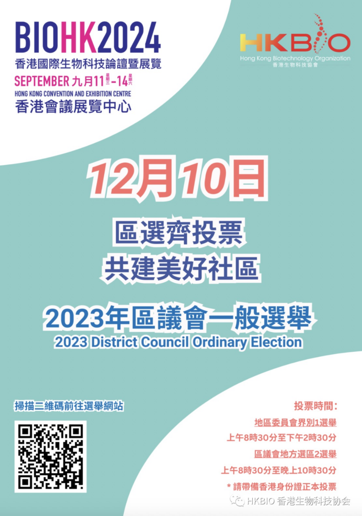 香港生物科技协会(HKBIO)始终坚定不移的支持“一国两制”、“港人治港”,呼吁所有市民积极投票,共建美好香港!