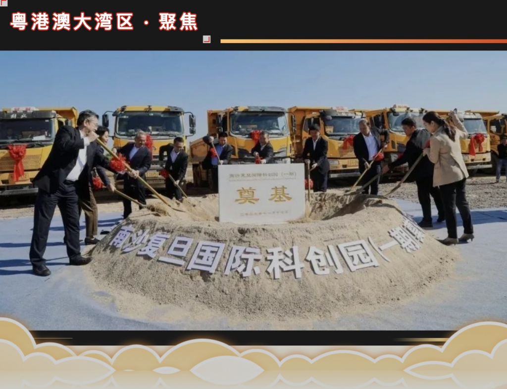 由复旦大学与南沙区合作共建的南沙复旦国际科创园(一期)项目于2023年11月17日举行了奠基仪式。科创园聚焦生命医药与健康、新一代信息技术等战略性新兴产业的创新与转化,在现有粤港澳大湾区精准医学研究院(广州)基础上,后续还将在低轨卫星、集成电路、柔性电力系统等领域,落地一批高质量研发平台。